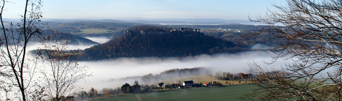 Eine großzügige Terrasse (25 m²) mit unverbautem Blick auf die Festung Königstein lädt immer zum Verweilen ein.